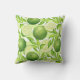 This fun summer outdoor pillow features a watercolor citrus pattern of green limes on a striped background.