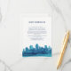 This modern, stylish insert card features a watercolor painted city skyline in navy blue and teal.