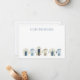 These cute note cards feature a row of coastal beach huts in soft watercolor shades of blues, tan and beige. Personalise with your choice of name or special text.