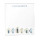 This cute notepad features a row of coastal beach huts in soft watercolor shades of blues, tan and beige. Personalise with your choice of name or special text.