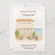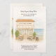This design beautifully illustrates a romantic coastal wedding scene set in front of a Mediterranean-inspired café by the sea. With its terracotta rooftop, striped awning, rustic iron chairs, and potted greenery, it evokes the charm of southern Europe and the relaxed elegance of seaside life. The soft watercolor tones and serene ocean backdrop create a dreamy and timeless setting, making it perfect for couples planning a destination wedding by the coast. Its warm and inviting aesthetic blends rustic Mediterranean architecture with the gentle romance of a beachside celebration, ideal for weddings that embrace both elegance and intimacy. This artwork is thoughtfully created with AI and is part of a customisable wedding collection, offering matching designs for cohesive wedding stationery and decor. Through affiliate links, these designs can also generate commission, making them not only beautiful but also rewarding to share.