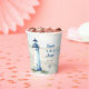 This elegant watercolor wedding paper cup captures the serene beauty of a New England beach wedding. Featuring a hand-painted lighthouse overlooking soft dunes and gentle ocean waves, the design sets a romantic coastal tone. Accented with nautical icons like anchors and a ship's wheel, the layout strikes a balance between timeless charm and seaside whimsy. Ideal for summer weddings in Cape Cod, Nantucket, or any coastal location, this paper cupis fully customisable, making it a stunning part of any beach-inspired table. Available with matching products.