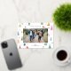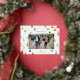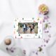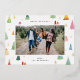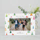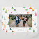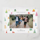 A festive one photo holiday card features original watercolor illustrations of colourful Christmas trees and foil accents.