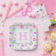 Watercolor Colourful Derby Jerseys & Hats Monogram Paper Plate
