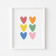 Watercolor colourful hearts print