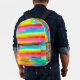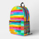 Vibrant Colourful Watercolor Rainbow Stripes Pattern Girls Printed Backpack with Custom Name