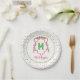 Watercolor Confetti Christmas Bow Monogram Crest Paper Plate