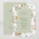 Introducing our exquisite wedding invitation, featuring a sophisticated muted color floral design in a captivating palette of sage green, blue, white, mauve pink, and golden yellow. This invitation is meticulously crafted to evoke an air of elegance and romance, setting the perfect tone for your special day.