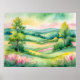 Bring the peaceful charm of the countryside into your home with this watercolor poster featuring rolling green hills, tall trees, and blooming wildflowers. Ideal for nature lovers, farmhouse décor, or anyone who appreciates calming landscapes, this artwork adds warmth and tranquillity to any room.