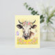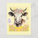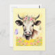Beautiful cow postcard featuring a cow with flowers, butterfly and dragonfly, on a buttery yellow background. Lovely for someone who loves cows.