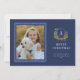 Celebrate the season with timeless elegance using this holiday photo card, featuring a custom watercolor family crest surrounded by hand-painted greenery and festive red berries. Your favourite photo is framed inside a hand painted border on the front, creating a classic holiday look with a personal touch.