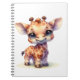 A cute, cartoon-style baby giraffe with large, expressive eyes and a joyful smile. It stands in a playful pose, the overall mood is cheerful and whimsical, perfect for a children's gifts.