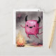 Watercolor Cute Shiny Pink Monster and a Campfire Postcard