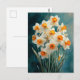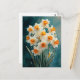 Watercolor Daffodils Teal Background Postcard