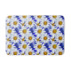 Bath mat in a watercolor pattern of white daisies with golden yellow centres, on a background in shades of denim blue