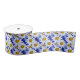 Ribbon in a watercolor pattern of white daisies with golden yellow centres, on a background in shades of denim blue