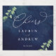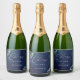 Watercolor Dark Blue Greenery Wedding Sparkling Wine Label
