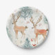 Watercolor Deer In Winter Forest Christmas Paper Plate
