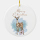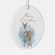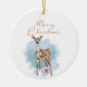 Watercolor Deer Pine Leaves Ceramic Ornament