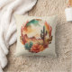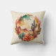 A pillow with a beautiful painted illustration. Green cacti and brown mountains with orange desert flowers. Scenic pretty southwest design.