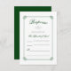 This destination wedding RSVP card emphasizes the romance of the Emerald Isle. Two iconic Irish symbols of love, the Claddagh and the Celtic love knot, separate and frame the text. A colour scheme of dark green, grey, and white makes the design simple yet elegant. Welcome your guests to your romantic Ireland wedding with symbols and colours from the Emerald Isle.