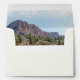 Envelope for the Watercolor Destination Wedding: Romantic Desert suite. A picture of a red desert cliff depicted in a watercolor motif is printed on the inside of the envelope. The envelope's colour matches the beige in the rest of the suite, tying the entire ensemble together. The return address is printed on the back flap in dark brown. Welcome your guests to your romantic desert wedding with southwestern flare.