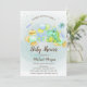Cute watwecolor dino, presents, cake, balloons baby shower invitation. These dino baby shower invitations are easily customised for your event by simply adding your details.