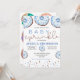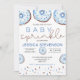 This customisable baby shower features watercolor doughnuts with sprinkles. The colours are perfect for a baby boy shower.