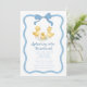 Celebrate the parents-to-be with this charming watercolor baby shower invitation featuring three adorable yellow ducklings splashing in playful puddles. This whimsical design is framed by a delightful wavy yellow border and topped with a sweet, hand-painted yellow bow, making it perfect for a gender-neutral or 'splashing into parenthood' theme.