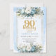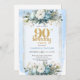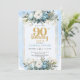 Watercolor Dusty Blue 90th Birthday Party Invite
