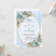 Watercolor Dusty Blue Flowers Gold Wedding Invite