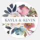 Watercolor Dusty Mauve Rose Blue Floral Wedding Classic Round Sticker
