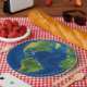 Watercolor Earth globe geography funny 3D illusion Paper Plate
