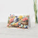 Watercolor Easter Illustration with Flowers, Eggs Holiday Card
