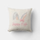 Add a sweet and festive touch to your home décor with this adorable Happy Easter bunny ears pillow featuring a charming watercolor illustration of soft rabbit ears tied with a beautiful pink bow and elegant pink “Happy Easter” lettering.