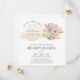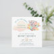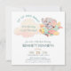 This invitation is special for its charming, soft watercolor illustration of a baby elephant flying an airplane among pastel clouds. The design uses a whimsical "Up Up and Away" theme and a light, soothing color palette. It is perfect for a boy baby shower or first birthday celebration with a travel or adventure theme.