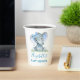 Watercolor Baby Elephant with a Blue Bow on Ferns Baby Shower Paper Cups. Blue Text.