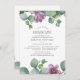 A modern and elegant class of 2025 graduation party invitation featuring botanical eucalyptus greenery succulent in green and purple watercolor. This trendy design is perfect for announcing your grad party and inviting your guests.