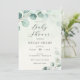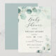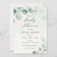 Baby Shower invitation featuring watercolor wreath of eucalyptus leaves and greenery. Customise with your event details to celebrate the mum to be.