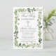 Modern Elegant First Holy Communion Invitation includes watercolor eucalyptus leaves and other beautiful botanical greenery foliage. Silver Cross.