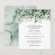 A botanical greenery watercolor eucalyptus wedding invitation. An elegant green eucalyptus wreath is seen hanging down above the black elegant text. Personalize by adding your full event details.