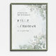 Elegantly rustic wedding signage with romantic eucalyptus in delicate shade of sage green and simple and stylish dark grey typography script on a watercolor background, with the addition of rustic sage green eucalyptus leaves. Customise with your unique details.