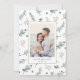 This stylish wedding save the date features a beautiful pattern of sage green and teal blue watercolor eucalyptus and greenery with an engagement photo for personalising. Easily personalise the back of this save the date with your wedding information.