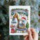 Whimsical watercolor construction Christmas card. Personalise with your own greeting text.