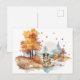 Watercolor Fall Dog Design- Australian Shepherd Postcard
