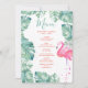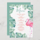 This pink flamingo and palm leaves dinner place setting menu card is perfect for a tropical themed bridal shower. The design features my original watercolor botanical greens artwork. The typography is set in a hand lettered script and sans serif font in green and corals. This food menu can be used for a wedding reception, rehearsal dinner, bridal shower, engagement party or any event. To see the matching suite visit www.zazzle.com/vginvites