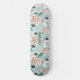 A seamless tropical pattern skateboard featuring elegant pink flamingos with speckled feathers and long, graceful necks. Set against broad brushstrokes in soft teal, mint, blush, and beige, the design mimics abstract palm fronds and foliage. Accented with dark stylised leaves flecked with gold and scattered black dots, this artistic watercolor-style pattern captures a dreamy, modern tropical vibe. Ideal for summer, beach themes, or tropical-inspired aesthetics.