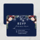 Watercolor Floral Burgundy Blue String Lights and Mason Jars Wedding RSVP Card - Blue Back