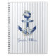 watercolor floral blue nautical stripes name notebook