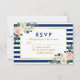 Watercolor Floral Blue Stripes Wedding RSVP Card